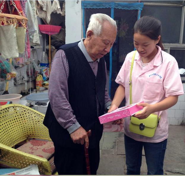 志愿者们首先到达河南省荣军医院,再次相见的老兵们看到志愿者高兴地向他们挥手问好。荣军医院党务办公室董主任热情地接待了志愿者,并告诉志愿者们:“应该记住为赢得卫国战争献出生命的英烈,感恩为抗战做出贡献的健在老兵,我们应该呼吁更多的社会群体关注抗战纪念,关爱抗战老兵”。随后,志愿者们又来到新乡市花园社区朱光武老英雄的家里,当志愿者们把相册递到朱爷爷手里时,他红着眼圈,不停道谢,并依次和志愿者握手。朱光武老英雄寄语志愿者们:“作为医护人员,要关心和关爱人民,做好护理治疗,细心观察病人的情况与病情,各个方面都要细心的观察,只要细心、还有爱心,就会在工作上做出成就”。他希望志愿者们牢记抗战历史,发扬抗战精神,积极为国家社会做出贡献。
