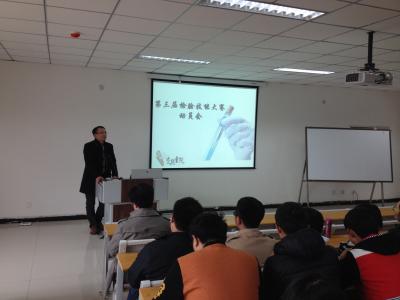 会上胡院长亲自做了动员,首先向同学们阐述了举办此次大赛的目的及意义。他指出,检验技能大赛是我院举办的特色活动和品牌活动,是展示我院医学检验学生风采,增强学生专业信心的关键活动,要办出精彩,凸显亮点。同时强调,大赛的最终目的只有一个:就是希望通过技能大赛活动,提高大家技能水平,为将来的实习和工作做铺垫。紧接着胡院长为同学们展示了往届检验技能大赛的精彩瞬间,同学们欣赏着学长学姐们熟练的操作,心生羡慕,个个跃跃欲试信心满满。