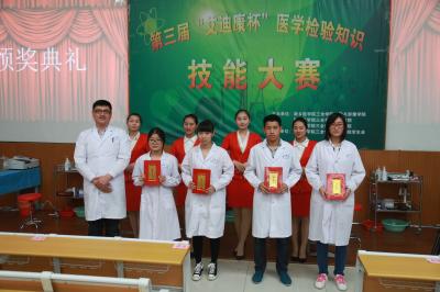 5月6日下午,第三届“艾迪康杯”医学检验知识技能大赛在平原新区第一教学楼D2教室隆重举行。比赛特邀新乡医学院教授、研究生导师李平法,郑州艾迪康医学检验所临床实验室经理杨超、实验室负责人李雪英,新乡医学院微生物教研室主任郭庆合、新乡雅士杰检验所、第一届技能大赛冠军安禹炜担任评委。三全学院副院长王洪兴,党委副书记张钢,检验与影像学院院长贺志安,德馨书院党总支书记金靖芝,崇德书院党总支书记徐超出席,院系专业教师、书院相关老师以及医学检验专业500多名学生参与。
