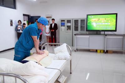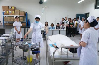 中午休息后,下午两点半在护理学院实验室举行了技能操作环节——“谢天谢地你来了”。本环节包括单人徒手心肺复苏术、铺备用床、密闭式周围静脉输液法三项内容。参赛选手个个着装整齐,精神饱满,5位评委老师在选手旁边,细心观察,严格打分。在规定的时间内,选手们镇静发挥,操作规范,技术娴熟,每一步都严格按照标准流程进行,现场气氛紧张、安静。
