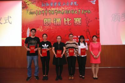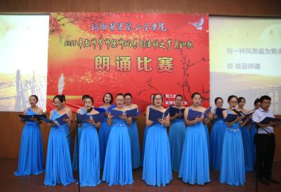9月17日中午,由我院工会主办,崇德书院工会承办的教师节系列活动“师德师风之岁月如歌”朗诵比赛在平原校区第一教学楼D2大教室举行。学院党委副书记、工会主席张钢,副院长沈雁霞出席,教务长杜华贞、图书馆馆长华玉民、总务部主任马波、院长办公室主任助理马素娟、检验与影像学院计航担任评委,500余名师生共同观看了此次比赛。