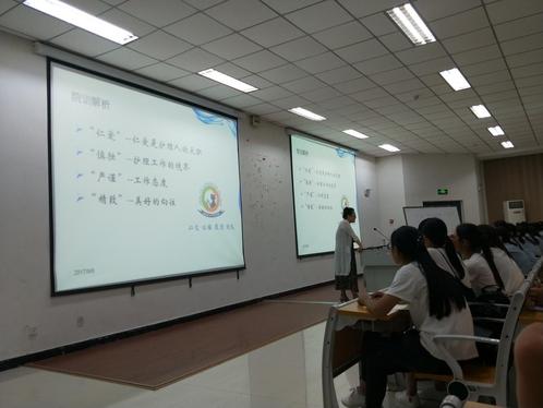 在这“开学第一课”上,薛院长从“护理专业的发展历史”入手,让同学们对护理事业有一个初步的印象,然后又为同学们介绍了护理学院的基本情况,并期望能将学生们培养成具备护理学院院训“仁爱,慎独,严谨,精致”精神的优秀专业护理人员。接着,薛院长又通过对护理的教学安排,教学方法,教育理念,护理发展前景的等几个方面深入细致的讲解,让同学们对今后的护理专业学习,有一个初步认识与了解。关于护理的就业前景,薛院长还特别介绍了男护士的就业优势,让一部分对男护士持怀疑态度的男生吃了一颗定心丸。通过入学专业教育,不仅使得新生们对今后的学习和生活有了较为深入的了解,同时也在一定程度上引导学生们对专业的心理适应,对新的人生历程的规划。相信崇德书院的新护理同学能从这个新的起点,展望美好的明天,共创书院辉煌。