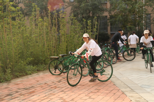 最后,由崇德书院共青团团员组成志愿者队伍,身着书院文化衫、佩戴共青团团徽,骑着专属于崇德书院的共享单车进行游园活动,崇德共享单车正式投入使用。