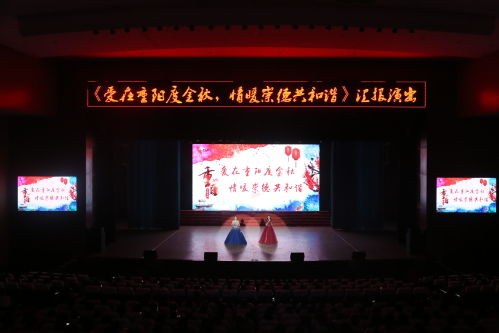10月30日在闻德礼堂进行了“爱在重阳度金秋,情暖崇德共和谐”汇报演出。学院党委副书记王金文出席,大学生就业创业指导服务中心主任李一光、学务部副主任赵云娟,崇德书院党总支书记徐超,副书记杨翠苹,崇德书院全体辅导员及1000余名学生观看演出。