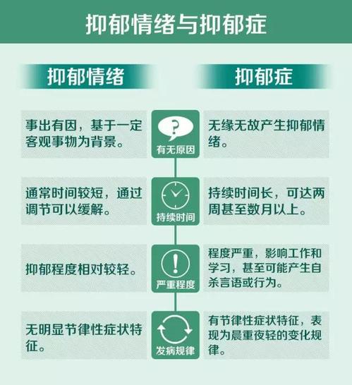 抑郁情绪和抑郁症也不相同。抑郁症是一种严重的精神类综合症,它不仅包含沮丧悲伤,还有丧失兴趣、疲倦、焦虑、厌食或暴食、失眠或嗜睡等因素。