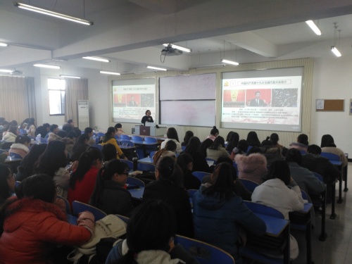 12月8日中午,崇德书院全体党员和入党积极分子在平原新区第一教学楼B202教室开展十九大专题讲座。本次活动特邀思政部石霞老师为我们进行十九大报告亮点解读。