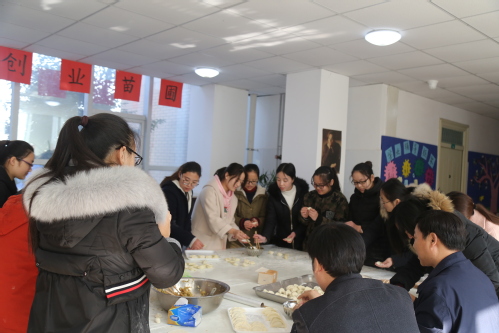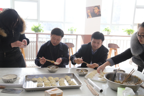 中午时分,思邈堂里热闹非凡。同学们与学院领导围坐在桌子周围各显身手,揉面团、擀面皮,忙的不亦乐乎。动手之余,学院领导与贫困学生进行谈心,详细了解了贫困生的家庭经济情况、学习情况,并鼓励他们增强克服暂时困难的信心,以优异的成绩回报社会,回报每一个关心和帮助他们的人。同时,他们表示,在生活上有任何困难可以及时向学院反映,学院一定会尽最大努力从各个方面给予贫困学生更多地帮助。听完这一席话,同学们的心里暖暖的,也逐渐打开了话匣子。从“王书记,您最喜欢吃什么陷的饺子”,到“王院长,您的大学生活是如何度过的”,同学们与两位领导不断交流着,两位领导亲切认真的回答使现场氛围温馨和谐。