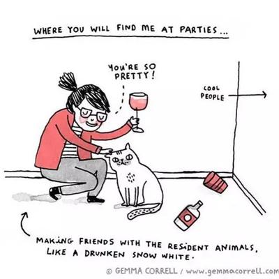6.去参加聚会,躲在角落里逗猫逗狗才是主题……喵~