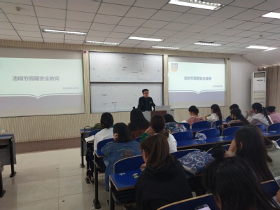 会上,老师告知学生加强自我防范和自我保护意识,提高财产、饮食、交通、消防、人身等安全要求,确保每一个学生思想上高度重视,并要求清明踏青同学做到文明观光,爱护公共设施、维护公共环境、树立良好的大学生形象。同时各班级做好假期去向登记表,以确保了解学生的假期动态。同时,返校后学生要到办公室做好返校情况登记。
