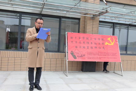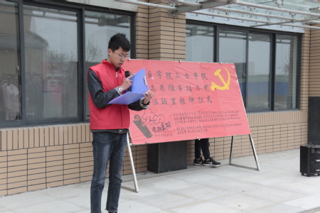 为充分调动学生党员投身志愿服务的积极性与主动性,进一步加强党员活动阵地建设,4月4日,我院在3号公寓楼前举行党员志愿服务站暨党团活动室揭牌仪式。三全学院党委副书记王金文、张钢出席,党务办公室主任吕莎、纪检监察审计部主任宋静敏、思想政治理论课教学部主任王炜烨、医学工程学院党总支副书记陈继超、团委刘璐及我院全体教职工和优秀学生党员志愿者参加揭牌仪式。