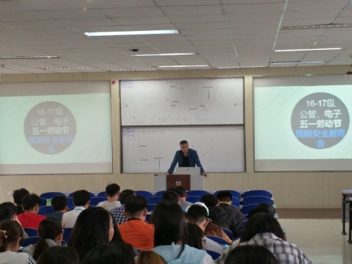 近期五一假期来临,为了强化假期安全教育,提高学生安全和文明意识,16-17级公管、电子大班于4月28日在C104教室举行五一假期安全教育班会。