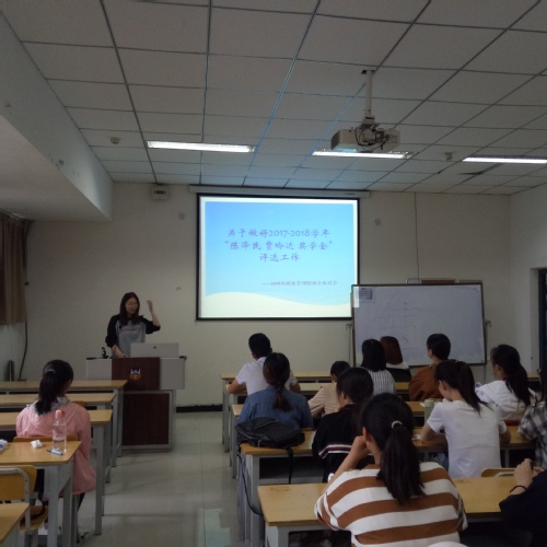 为激发学生刻苦学习、奋发成才,促进学生德、智、体、美等全面发展,崇德书院16级公管电子大班各小班于2018年5月9日上午在第一教学楼举办了“陈泽民 贾岭达奖学金”评选宣讲会,会议由各小班团支书主持