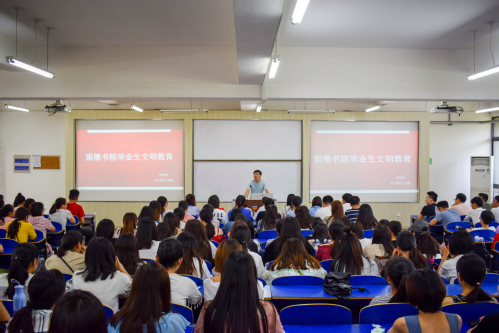 赵超建老师对即将离校的毕业生有关“文明教育”和“安全教育”做出指导,并对大学生走向工作岗位前提出了建议。