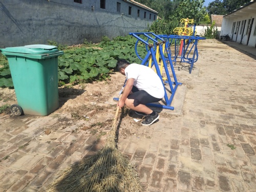 在此之前,我们为老人清扫了各自房内的卫生,并且整理了各自的床铺,为老人营造了一个舒适的午睡环境。在老人进入梦乡之后,我们因昨日了解到大部分老人不方便打扫院内卫生,于是在这一问题的基础上我们进行了院内的大扫除。正午后的太阳光线正是毒辣的时候,但我们团队没有偷懒,没有放松,一直在抓紧时间的进行打扫,从而在老人午睡结束后给老人一个干净、舒适、整洁的环境,让老人可以身心舒适的进行日常活动。老人们纷纷表示了他们对我们行动的谢意,我们亦因为帮助了老人而感到喜悦。