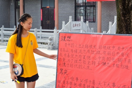 “幸福不是毛毛雨,幸福不是免费午餐,幸福不会从天而降。人世间的一切成就、一切幸福都源于劳动和创造。”(2015年6月1日习近平总书记会见中国少年先锋队第七次全国代表大会全体代表时的讲话)一道道稚嫩的童音载着梦想与志向汇聚在一起,响彻在河南省新乡市辉县新村村委会文化小广场。