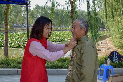 10月12日,崇德书院的大学生志愿者在平原校区图书馆东门搭建“时光摄影棚”,为在新区工作的老教授和在新区默默支持青年教师工作的老人们拍照。