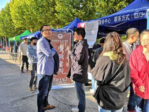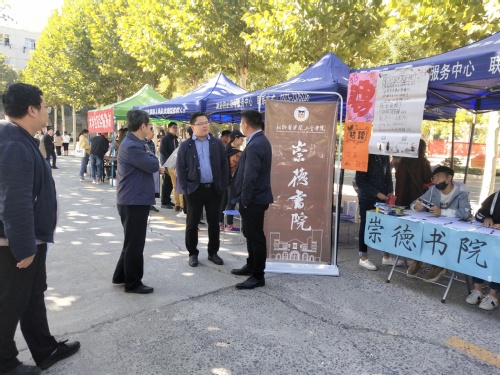 2018年10月27日上午,河南省医学卫生类毕业生就业双向选择洽谈会(秋季)在新乡医学院隆重举行,此次招聘会共有四百余家用人单位。崇德书院积极参与其中,并组织护理、检验、公管、助产、等多个专业的毕业生参加。出席本次招聘会的领导有新乡医学院三全学院党委副书记王金文、崇德书院书记徐超,副书记杨翠苹等。