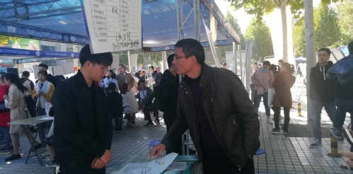 27号早上志愿者们提前到达会场并进行布置,随后我院书记徐超前来指导工作,并与多家用人单位沟通,推荐优秀毕业生就业。当天在场的各位毕业班辅导员也积极走访各用人单位的服务台,与用人单位进行联系,了解第一手的反馈信息,以便于为毕业生提供更够准确、更前沿的就业消息。志愿者也积极统计了用人单位信息,组织前来应聘学生的签到及就业意向统计工作。招聘会现场,应聘者都手持自己精心准备好的简历,满脸自信的穿梭在人群中,积极与用人单位交流。