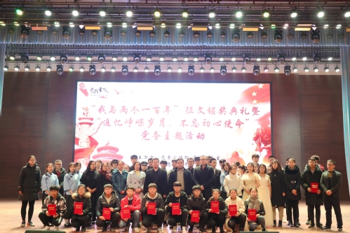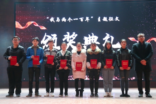 在慷慨激昂、催人奋进的音乐中,表彰大会拉开序幕。主持人宣读了“我与两个一百年”征文获奖名单,校领导、相关部门负责人分别为获奖代表颁奖。