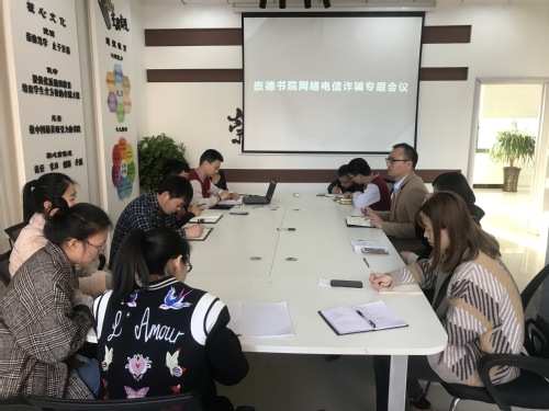 针对当前大学校园“非法校园贷、电信网络诈骗、传销”案件多发现象,为提高我校学生的安全防范意识和技能,3月12日下午,崇德书院组织召开了“网络电信诈骗”专题会议,崇德书院党总支书记徐超、崇德书院党总支副书记杨翠苹及全体辅导员老师参与了此次会议。