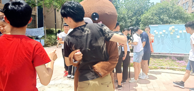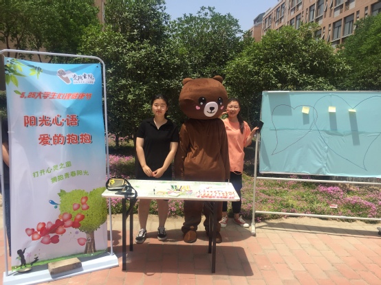 2019年5月25日中午十二点,第十一届5.25心理健康节系列活动——“阳光心语·爱的抱抱”温暖校园活动在崇德书院小广场顺利拉开帷幕,300余名同学参与了本次活动。在本次活动中,由轻松熊给同学们鼓励与拥抱,让同学们对自己坦诚,对身边的人坦诚,释放心情,说出对朋友、家人、学校的感谢。活动现场还摆放了“感恩”和“祝福”两块展板。同学们在便利贴上写下自己对好友、家人、学院的感恩与祝福,或是自己大学三年的心愿和梦想,在展板上贴成两颗❤的形状。