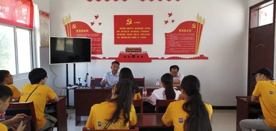 在村委会办公室,实践队员开展了以“深入乡村基层,学习时代先锋”的活动,在此次活动中宋启明书记就邢桥村近几年脱贫攻坚的发展方向以及邢桥村近几年的发展变化进行了阐述,并为实践队员上了一节以“传承奋斗精神,争当时代新人”为主题的特殊党课,宋启明书记告诫实践团成员要坚定不移地跟随党的政策步伐,大力实现个人与社会的发展,对实践团成员提出了当代大学生的发展寄语。他说,作为大学生,贫这种艰苦奋斗的意识,需要新时代下的大学生进行树立和强化。其次是,要拓宽发展的视野,从不断的工作进程中完善自己。第三是,作为当今学子在中国梦的实现过程中应该有所作为,宋启明书记号召大家“做无愧于祖国和时代的追梦人”。宋启明书记担任汝南县罗店镇邢桥村驻村第一书记,在脱贫攻坚工作中,常年奔波在田间地头,他想方设法帮助群众解决困难,他为村民提供优质蔬菜种子、菜苗,把蔬菜种植技术带到这个村。如今,该村已建成县里的脱贫攻坚、基层党建、人居环境、产业发展“红旗村”。