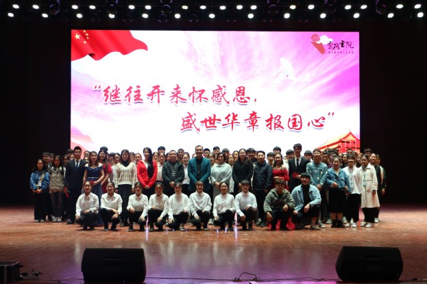 红色教育是党员教育的重要组成部分,也是开展“不忘初心、牢记使命”主题教育的必要载体。为更好地发扬优良革命传统,重温红色记忆,传承红色基因,激励广大师生党员担当作为,11月12日晚,崇德书院在闻德礼堂开展“继往开来怀感恩,盛世华章报国恩”汇报演出。我校副院长邱永建出席,相关职能部门负责人以及崇德书院900余名师生观看。