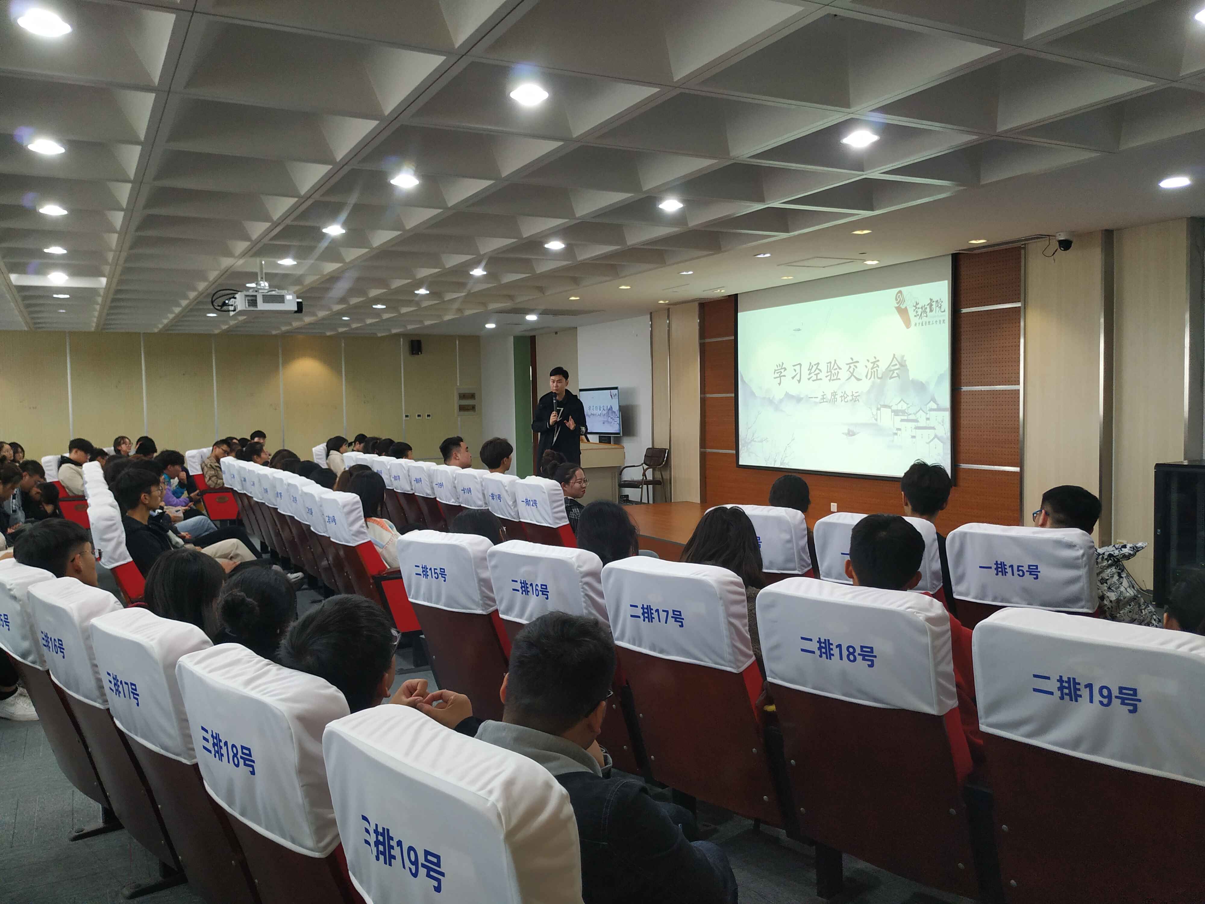 在热烈的掌声中,崇德书院第四届学生会团支书王众楷上台分享宝贵的考研经验和工作经验。他针对学生会各部门的情况做出了简要分析,并指出,在学生会的日常工作中要做好时间规划,确保学习,工作两不误。并鼓励同学们在活动中保持开拓创新,积极进取的心态,培养良好的工作习惯,在未来的工作道路上做到游刃有余。在场同学纷纷表示认同,年轻的脸庞上写满了坚定和对未来的希翼。