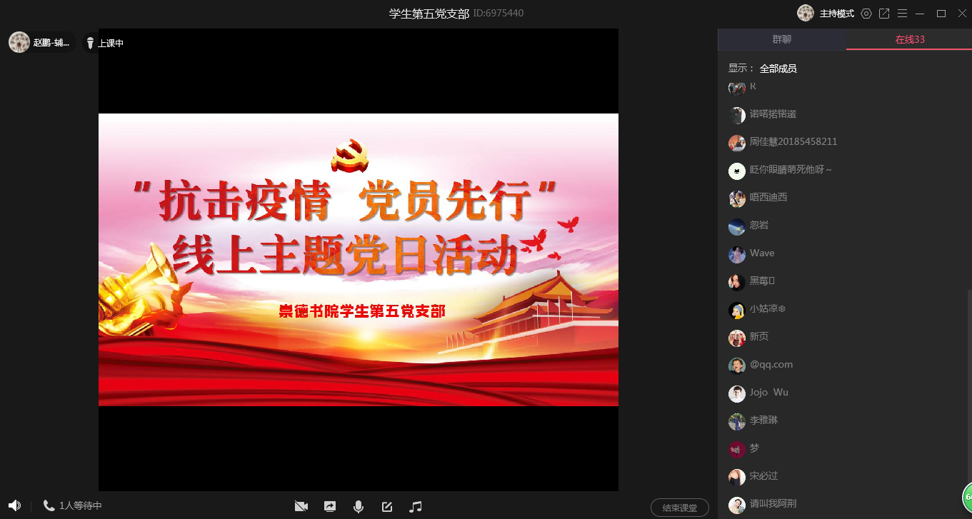 为进一步强化党支部战斗堡垒作用和党员先锋模范作用,教育引导广大党员干部在疫情防控中磨砺担当之勇、科学防控之智、统筹兼顾之谋、组织实施之能,践行入党誓言、检验初心使命,3月26日上午,崇德书院学生第五党支部通过支部QQ群开展“抗击疫情,党员先行”线上主题党日活动。