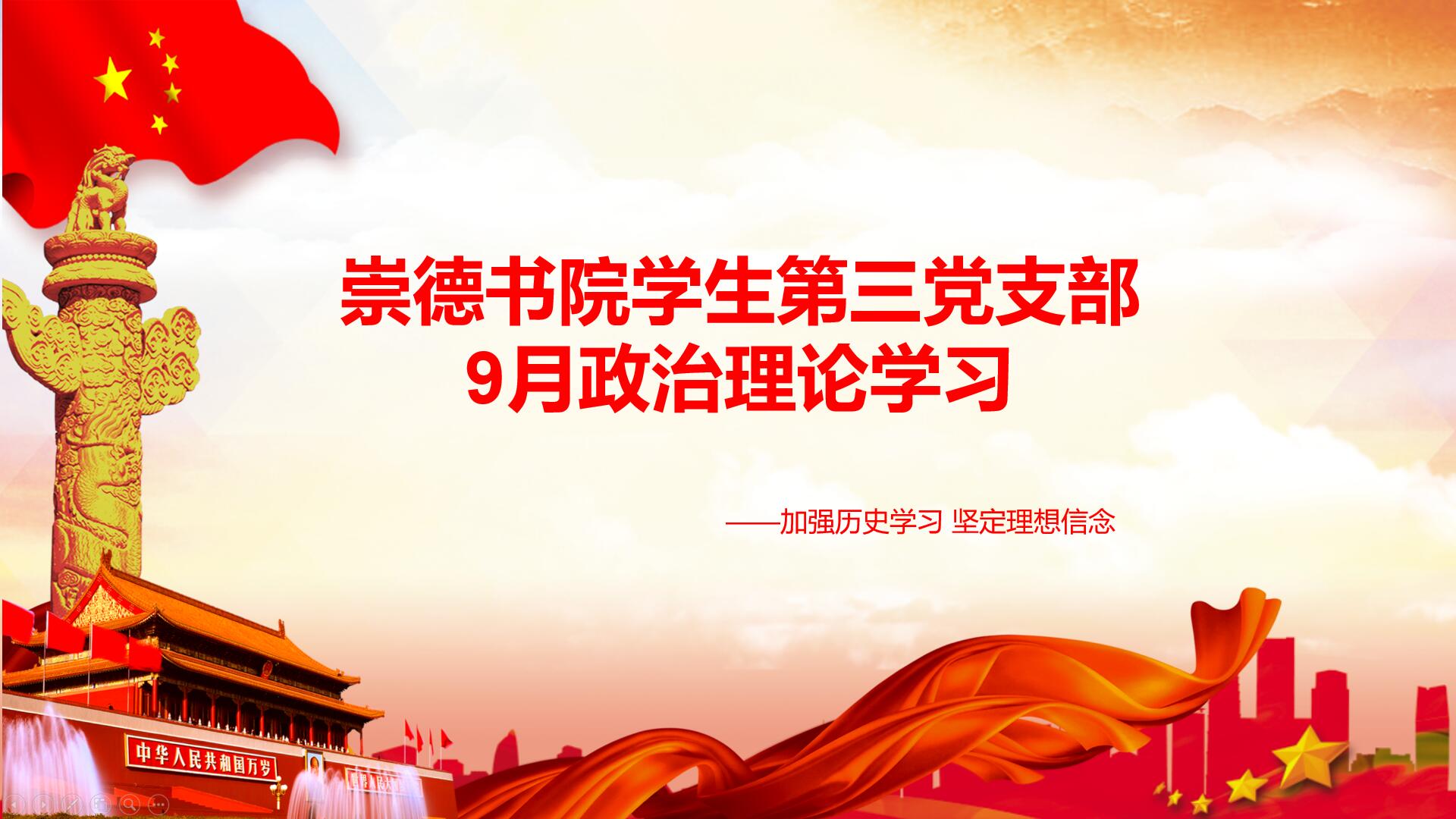 根据学校工作安排,崇德书院学生第三党支部通过线上平台开展此次政治理论学习。首先,张晟烨同志向支部党员讲述历史学习的重要意义和坚定信念的深刻影响,今年“七一”前夕,习近平总书记在给复旦大学青年师生党员回信中强调:“希望广大党员特别是青年党员认真学习马克思主义理论,结合学习党史、新中国史、改革开放史、社会主义发展史,在学思践悟中坚定理想信念,在奋发有为中践行初心使命”。