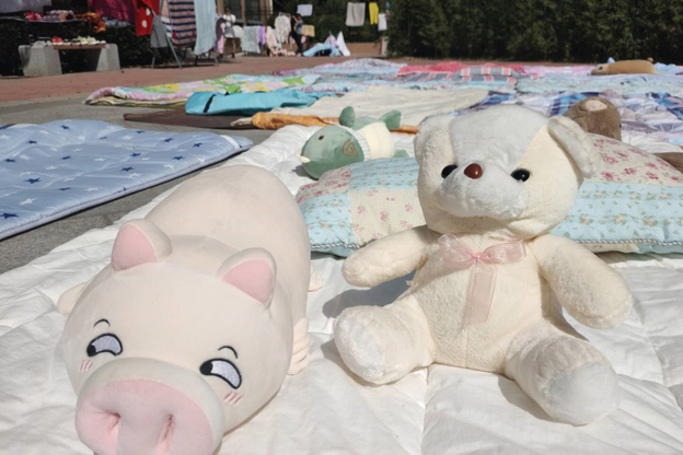“我们提前在承德苑广场铺了雨布,方便学生返校后,第一时间晾晒被褥。看着地上铺满的五颜六色的被子,以及学生的各式各样的毛绒玩偶,顿时感觉校园烟火气回来了”。崇德书院院务主任张晟烨说。