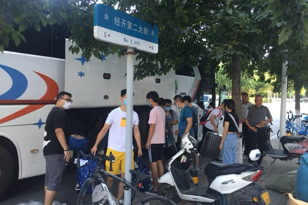 “今早4:30校园里的老师们已经开始忙碌起来了,看到学务老师不停地和司机师傅沟通,跟车老师在群里不断提醒我们一定不要落下东西……说实话,真的挺感动的。结束了在学校的学习生活,很感谢母校用这种方式‘欢送’我们!”此次前往教学基地的一名学生说。