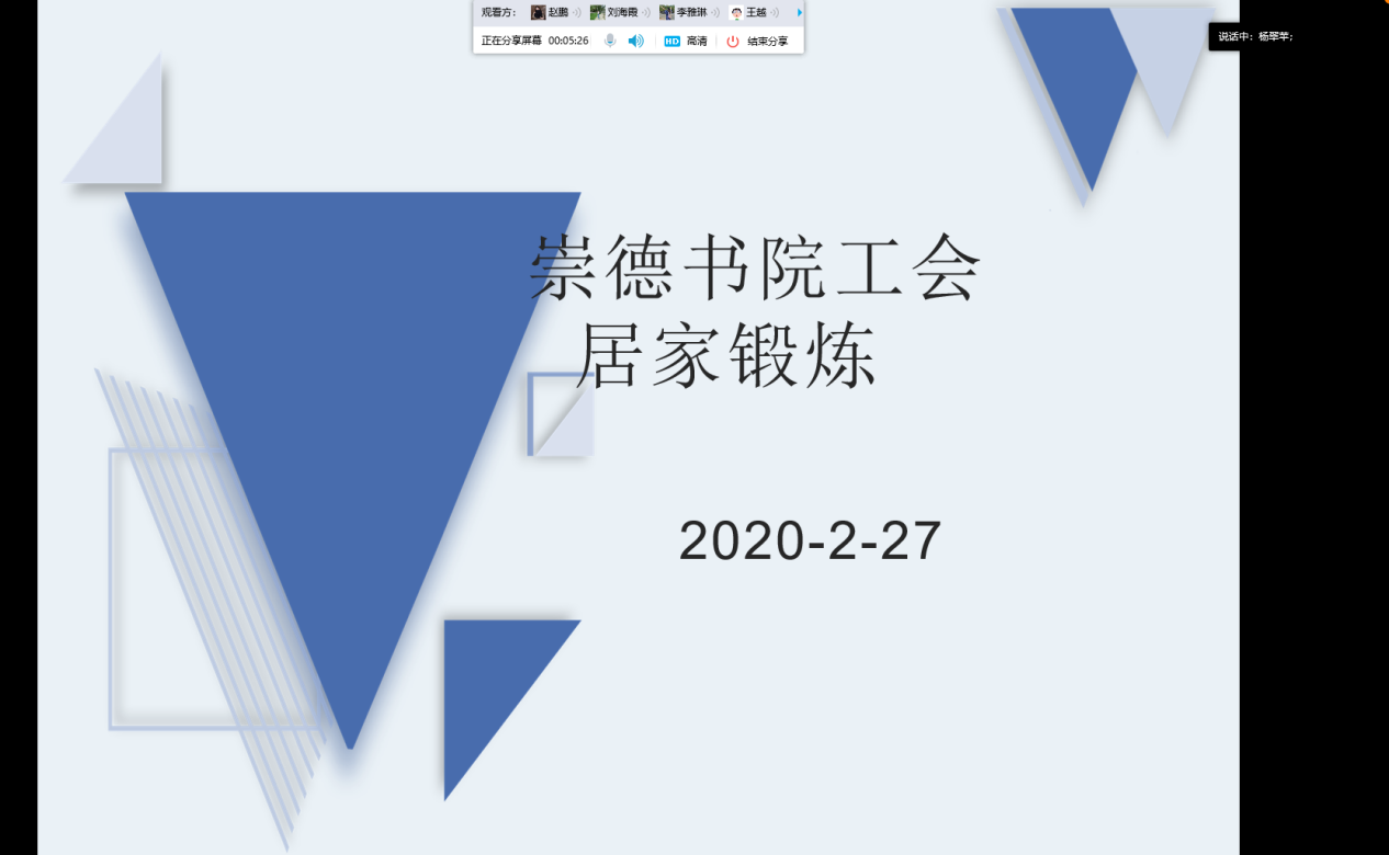 在2月27崇德书院QQ群以“全家抗疫”为主题的动员活动,由崇德书院党总支副书记杨翠苹主持本次活动,全体书院教职工参加本次活动。