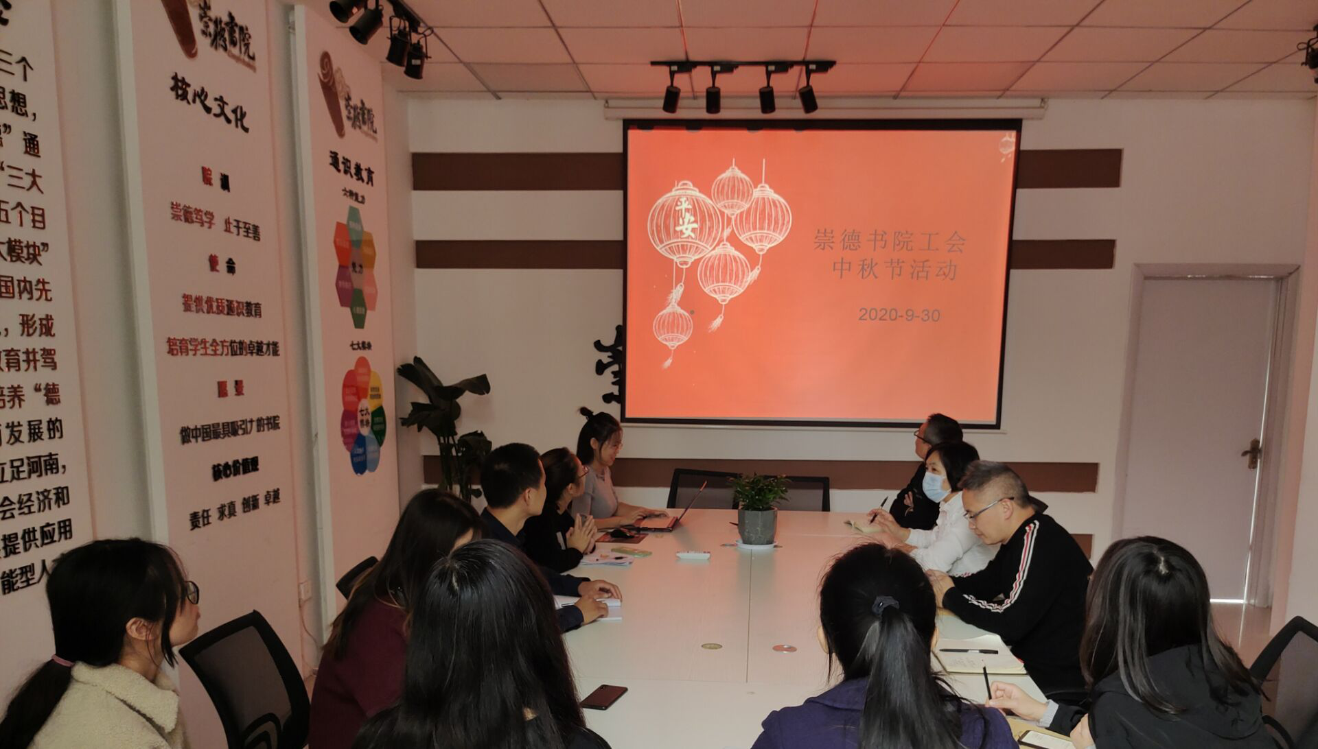 金秋九月,天高云淡,在这如诗如画的季节里,迎来了2020年崇德书院教师中秋茶话会。为使教师们更多地了解中华民族传统节日的文化内涵,广泛挖掘与诠释中华传统节日的文化底蕴使教师在活动中感受到中华民族的优良传统,9月30日,崇德书院的全体教师齐聚一堂,在一楼办公室举办了一个别开生面的茶话会,开展了主题为“品月饼赏圆月共度欢乐中秋”的庆祝活动。活动场地也十分有限但是丝毫没有影响到老师们的热情。活动中每个教师通过中华经典诵读、小品、歌舞等形式展示了中秋节的风俗习惯,传达出了传统节日所蕴含的深厚文化内涵,同时教师们巧妙地将有关中秋节的来历、传统习俗、诗歌等以文娱活动的形式呈现出来,营造出了浓厚的民族节日氛围,弘扬了优秀的民族精神和传统文化。整个活动从晚上七点一直持续到了九点,教师们的歌声、乐声、欢笑声充斥着整个校园使得今年的中秋佳节为校园增添了别具一格的祥和气氛。通过本次活动的开展给了老师们不一样的文化感受,进一步激发了老师们了解学习中华民族优秀传统文化的热情,对全体老师再一次进行了“感恩”教育,增强了教师们民族自尊心、自信心及自豪感,也使得大家在学校这个大家庭中感受到了欢乐和友爱,促进了老师们工作的积极性。