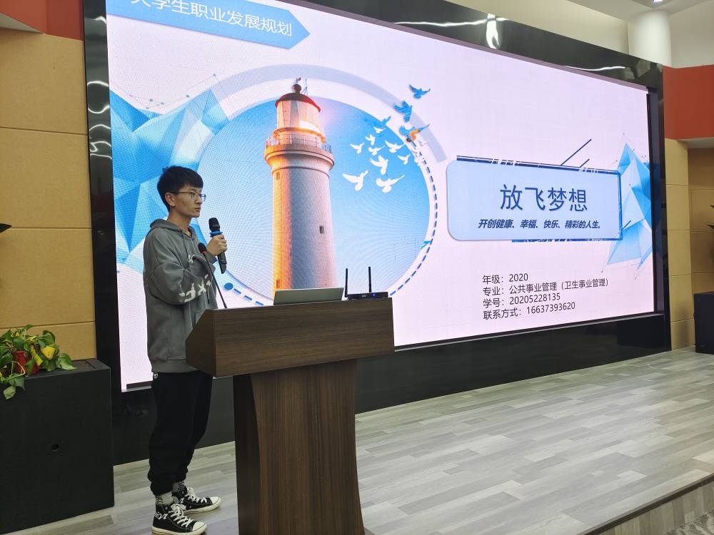 首先,各参赛选手通过抽签的形式决定了出场顺序。经过了充足准备的选手们按照顺序一一展示自己的职业生涯规划。选手杨慧茹熟练地采用霍兰德人格类型测试、MBTI性格职业测试及SWOT分析等方式,客观透彻地进行自我认知、环境分析,准确做出职业定位并及时做出评估调整,提出较为成熟和合理的职业生涯规划以及实践方案。整个比赛过程,同学们都聚精会神的聆听参赛选手对自我的认知、对自己职业生涯的规划。检验师、心理咨询师、疾控中心工作人员……每位参赛选手都根据自身的特点,准确地分析了自己的优缺点,并据此确定了自己的短期、中期和长期目标,规划了自己的职业生涯,也让在座的其他同学获益颇丰。
