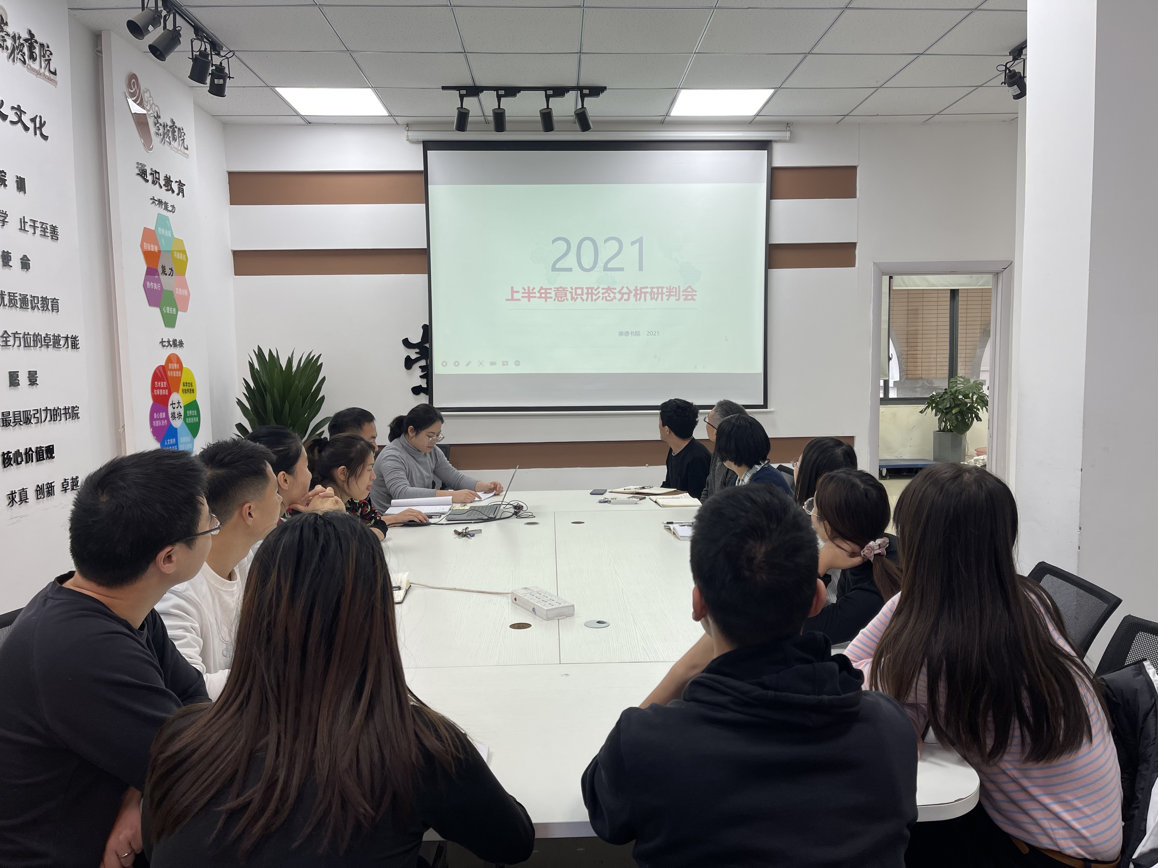 2021年5月11日,在崇德书院会议室召开了“2021年上半年意识形态分析研判会”。会上大家集中学习了“习近平总书记关于意识形态工作的重要论述”各对口老师结合各自工作实际,围绕崇德书院上半年度宣传思想和意识形态工作的主要做法、存在的问题及下一步打算,对意识形态工作了分析研判。