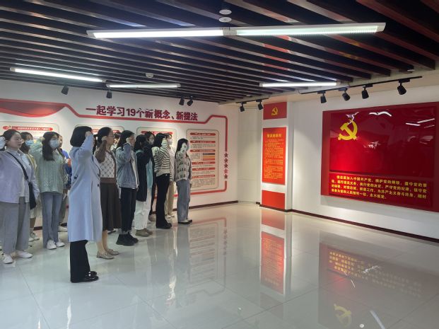 第一个环节:大家来到新时代学习馆,在讲解员孟佳慧的带领下,一起参观了“不忘初心学党史”“继续前行知党情”“红色记忆铸党魂”“铭记誓词感党恩”“牢记使命跟党走”“走进新时代开启新征程”六大专题展区,全面展示了我党波澜壮阔的奋斗历程和举世瞩目的辉煌业绩。随后,全体党员同志重温了入党誓词。