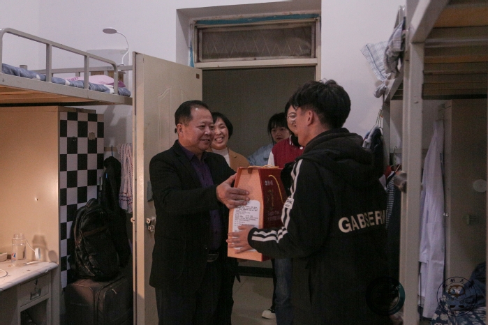 在调研的最后,石永立来到学生寝室,慰问家庭经济困难学生。他亲切地询问了同学的基本情况和困难,并送上学校对学生的关爱和慰问品。
