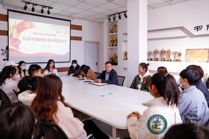 为深入贯彻落实习近平总书记在学校思想政治理论课教师座谈会上的重要讲话精神,进一步落实立德树人根本任务,用习近平新时代中国特色社会主义思想铸魂育人,推进党的创新理论入脑入心。11月10日下午,学院副院长袁磊来到崇德书院讲授“弘扬中国精神,增长报国才干”专题思政课。