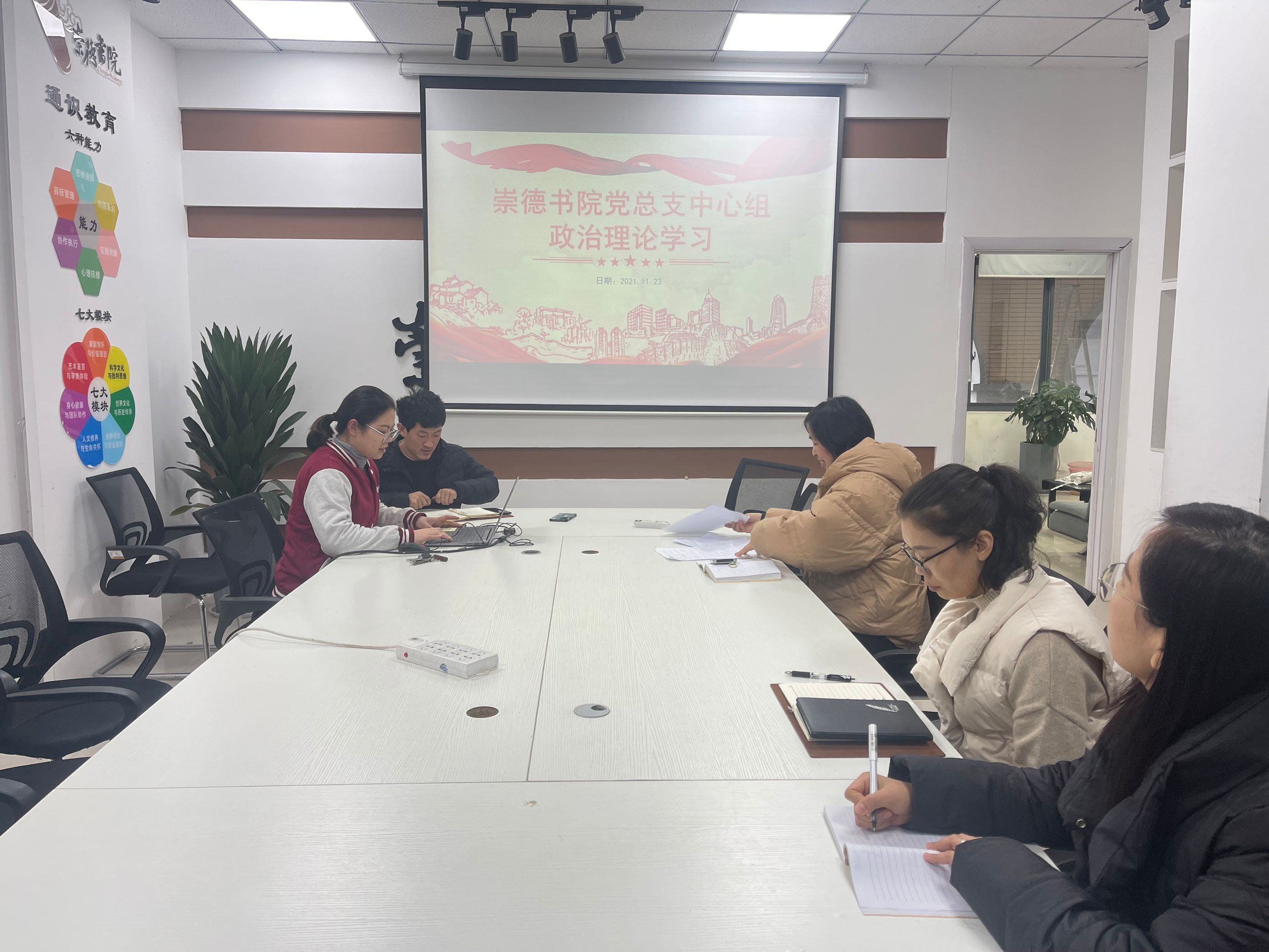 为继续巩固政治理论学习成果,加强思想政治建设和师德师风建设,进一步提高党总支领导班子的思想道德修养,11月23日下午,崇德书院党总支中心组在书院会议室开展11月份政治理论学习。本次学习由党总支副书记杨苹主持。