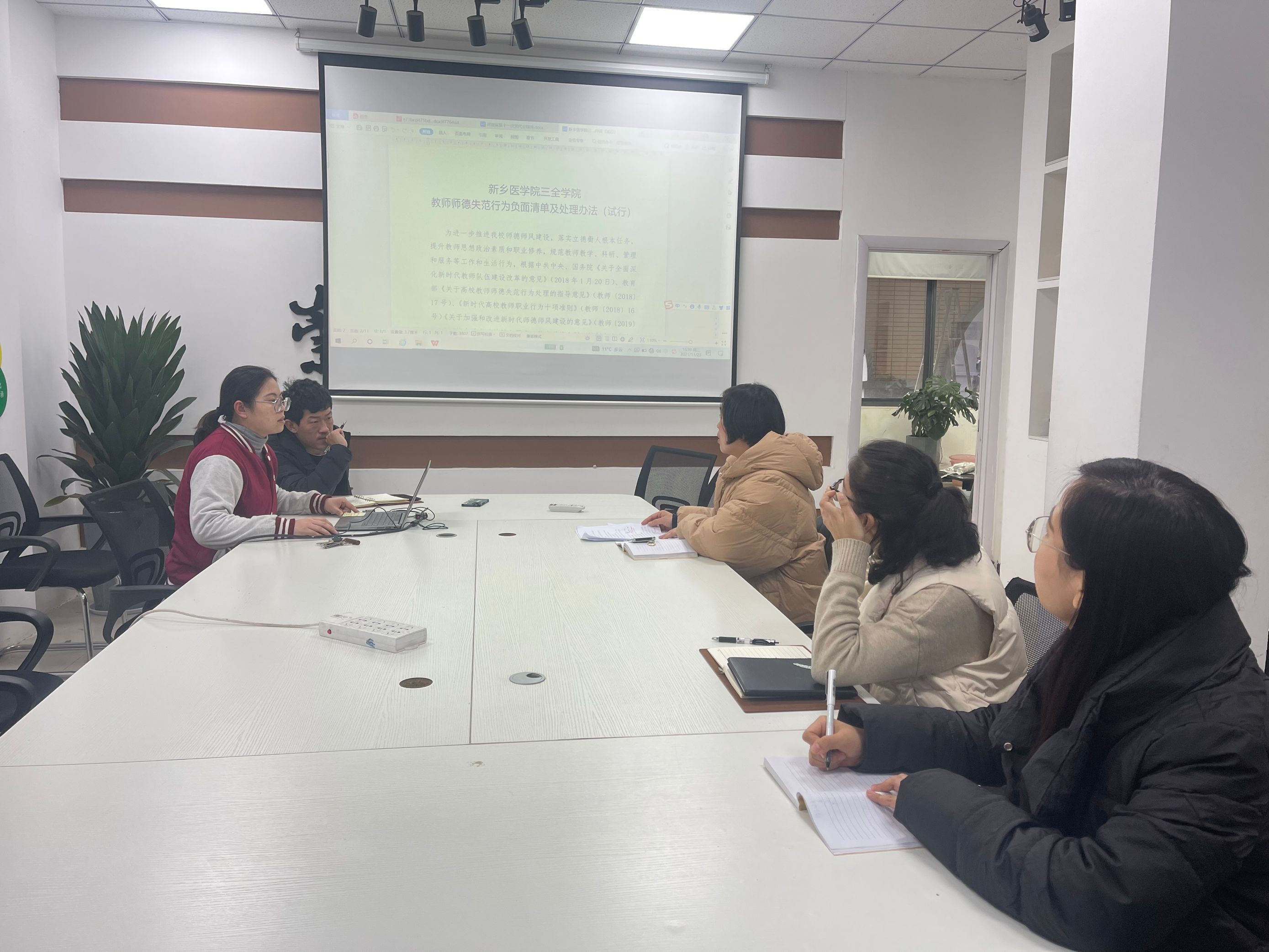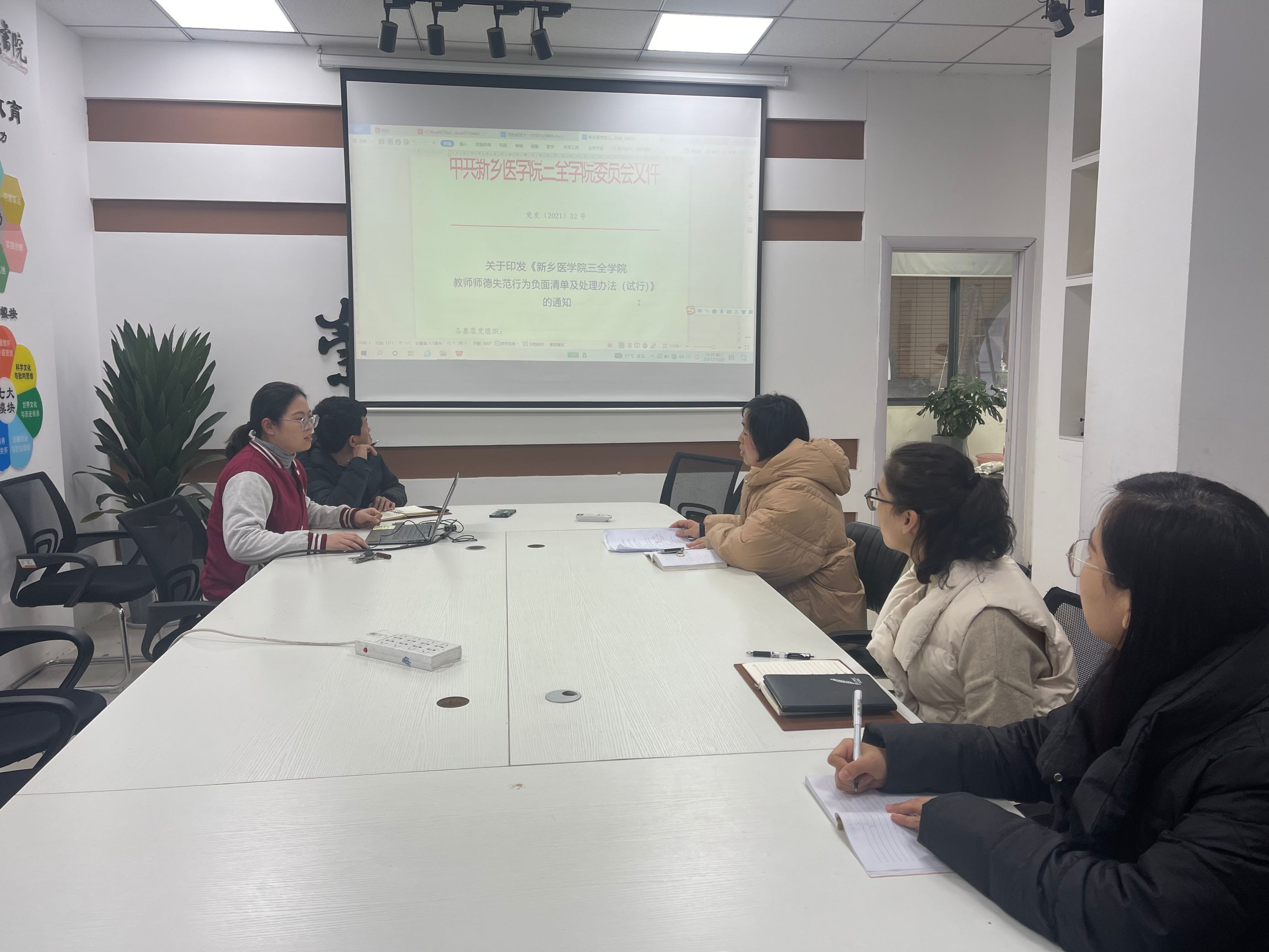 会议首先组织学习了《河南省第十一次党代会精神》、《新乡医学院三全学院教师师德失范行为负面清单及处理办法(试行)》和党的十九届六中全会精神。集中学习结束后,与会同志根据学习内容发表了自己的学习感悟。