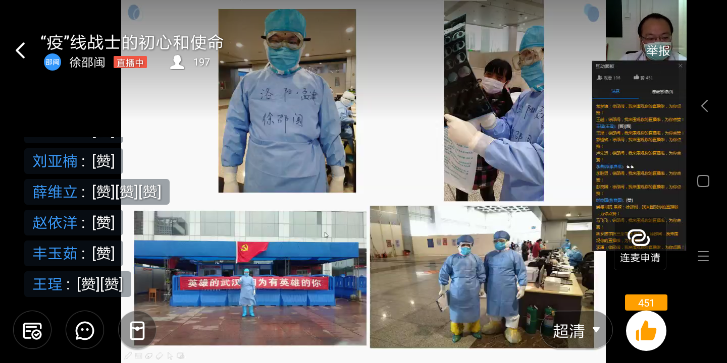 为引导广大青年党员在新冠肺炎总体战阻击战中受教育长见识,自觉加强爱国主义信念,锤炼党性,增强宗旨服务意识。4月25日上午,崇德书院党总支通过网络,连线从抗疫一线凯旋的孟津县第二人民医院慢病管理中心、泰康社区卫生服务站主任徐邵闽,以他的亲身经历,为书院师生分享了疫线战士的初心和使命。本次专题党课由崇德书院党总支副书记杨翠苹同志主持,书院全体师生党员和入党积极分子共200余人在线观看。