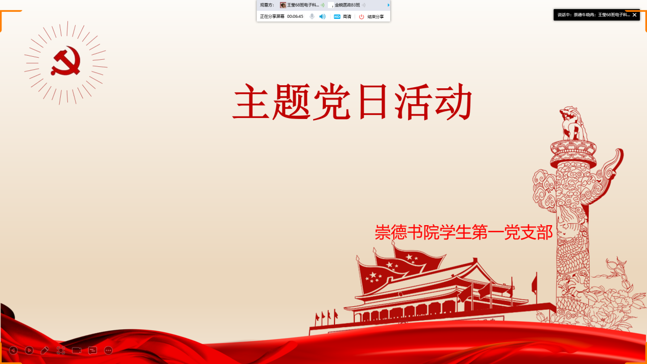会议最后,牛晓冉结合崇德书院学生第一党支部的实际情况针对在线上不断地提出新的问题去解决问题。通过本次会议,书院师生党员认识到,坚持从实际出发、实事求是,不逃避有担当、坚持原则,做到对党忠诚、信念坚定。