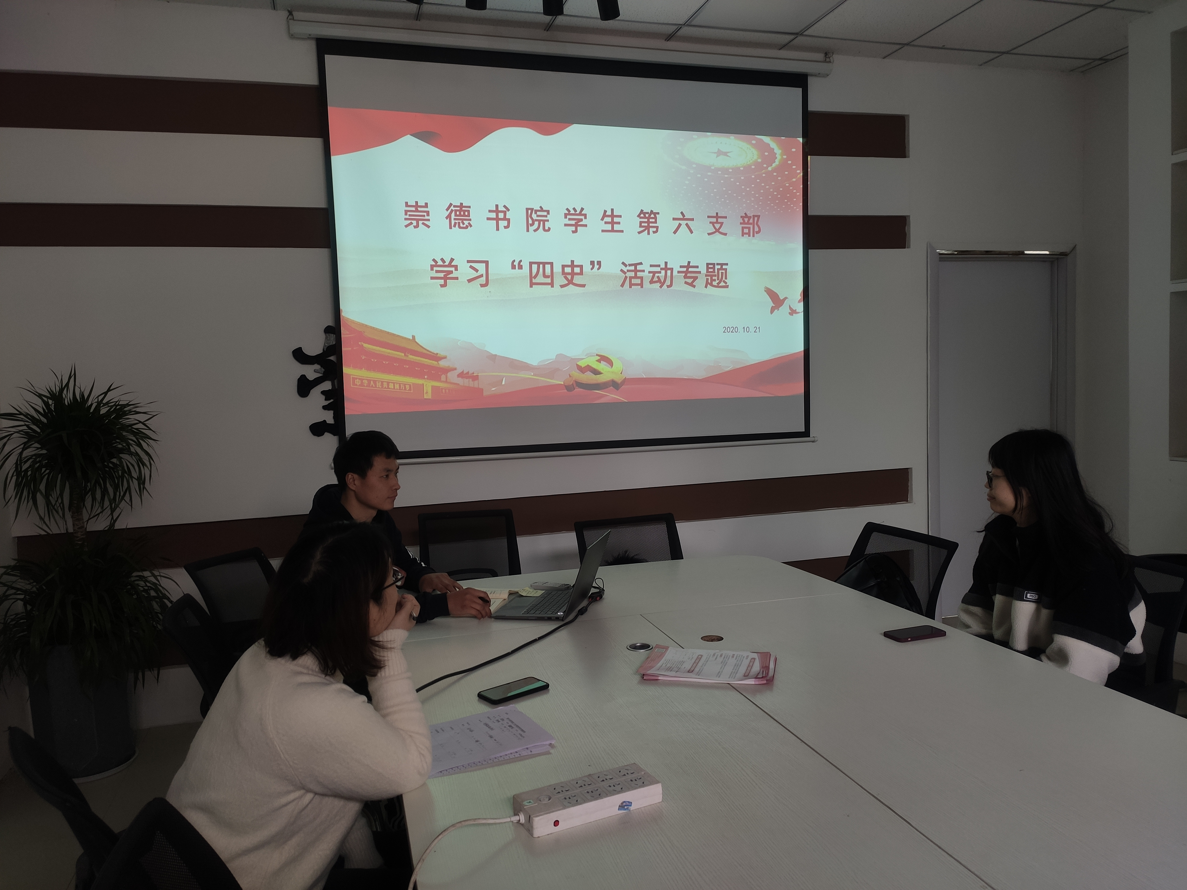 为深入学习宣传中国人民志愿军的英雄事迹和革命精神,学好党史、新中国史、改革开放史、社会主义发展史,激励全党全军全国各族人民更加紧密地团结在党中央周围,响应学校关于“四史”学习的号召,2020年12月10日下午,崇德书院学生第六党支部在线上举行了“四史”学习教育的政治理论学习会议。