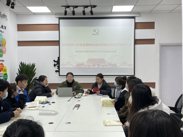 12月18日上午,崇德书院学生第五党支部在书院会议室举行“贯彻落实六中全会精神决战决胜建设高水平医科大学及新党员宣誓仪式”主题党日活动。本次会议由全体党员参加,党支部书记赵鹏主持。