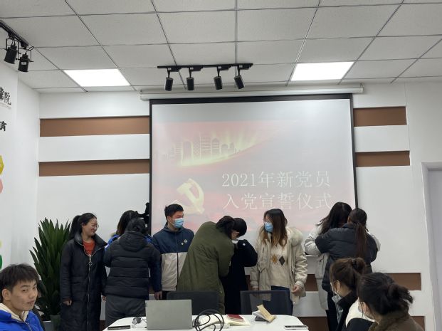 宣誓仪式在雄壮的《国际歌》声中拉开帷幕。全体党员面向党旗,在赵鹏的领誓下进行了庄严的宣誓。并向新入党的同志表示祝贺,希望新入党的同志在今后的工作和学习中不断进步,不断创新,取得新成绩!
