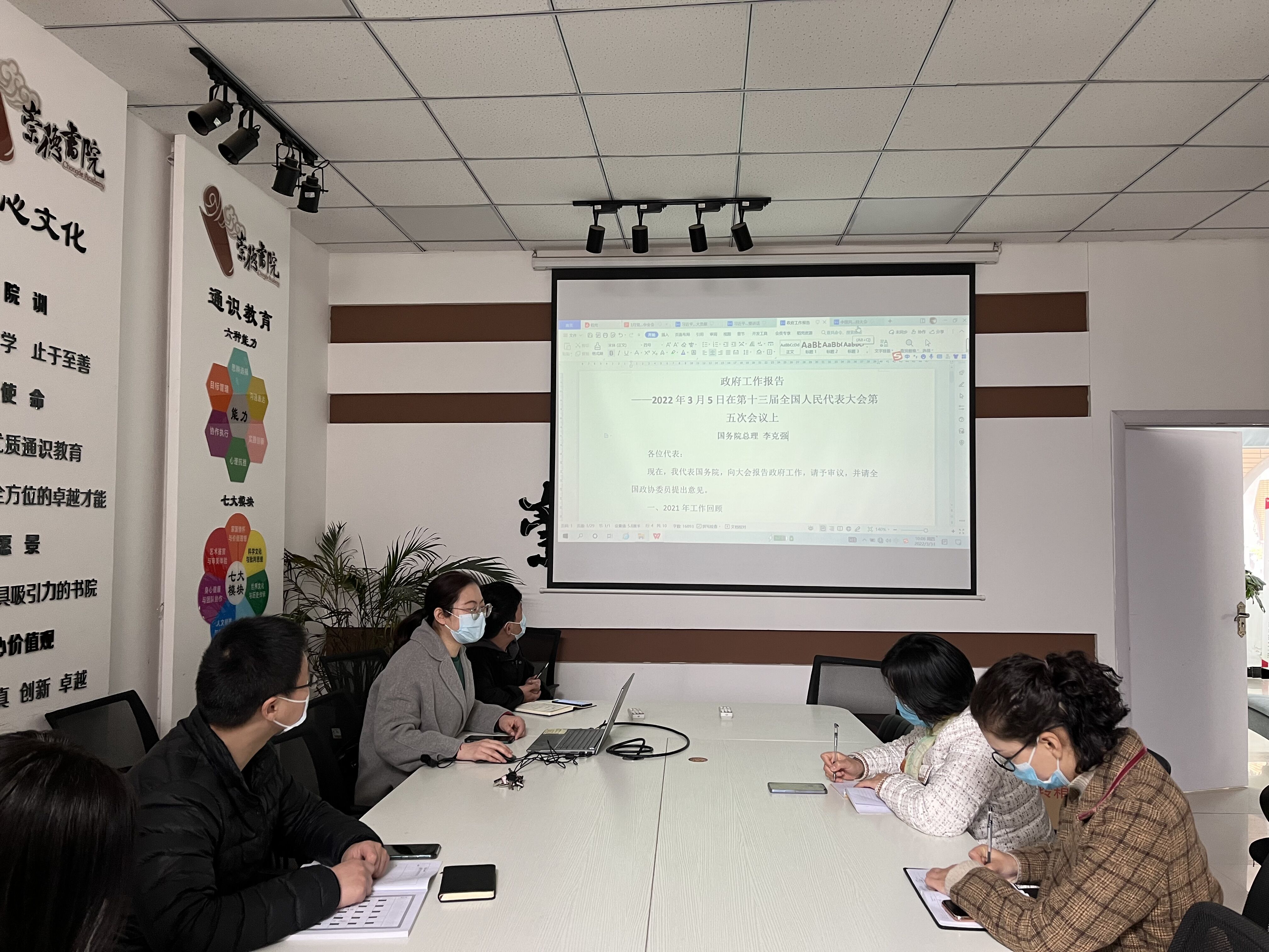3月31日下午,崇德书院党总支理论学习中心组在书院会议室开展3月份政治理论学习。本次学习由崇德书院党总支副书记杨翠苹主持,重点学习了习近平在省部级主要领导干部学习贯彻党的十九届六中全会精神专题研讨班开班式上发表重要讲话、第十三届全国人民代表大会第五次会议政府工作报告等内容,书院中心组全体成员参加了学习。