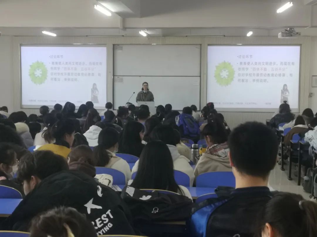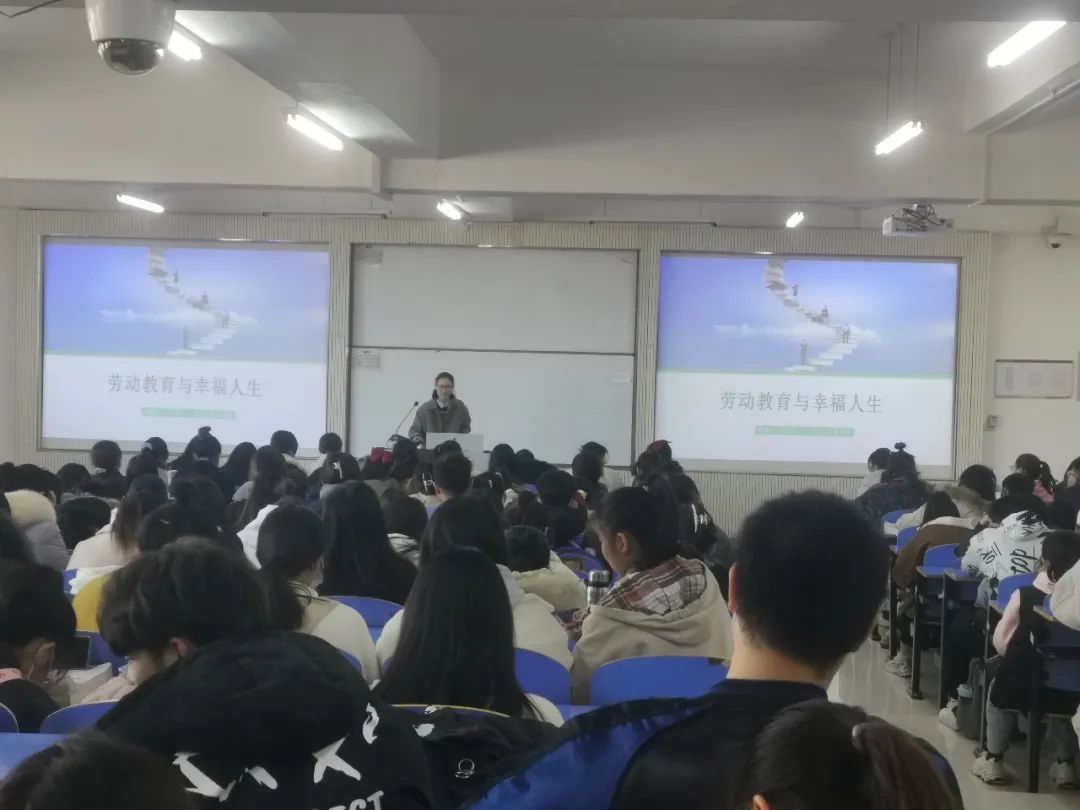 她提到,在新时代的历史坐标上,社会及科技发展日新月异,新时代大学生适应新时代劳动教育的特点,在不同形态的劳动中保持创新精神,未来才能引领时代、实现创新劳动、创造辉煌,从而实现自我价值。互动环节中,关于“四体不勤、五谷不分”对大学生成长影响的讨论,引发了同学们热议。课后有学生说,之前认为学习就是坐在教室看书,现在发现那是纸上谈兵,我们确实缺乏生活能力、动手能力。以后要加强这方面的训练,才能适应社会发展。