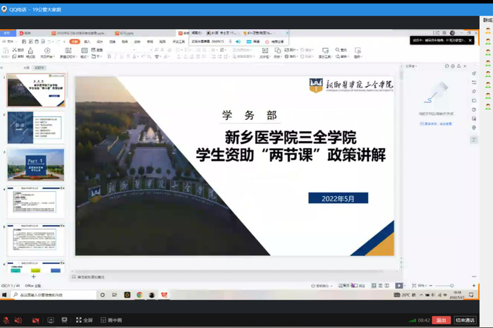 为认真落实学生资助“两节课”制度,切实做好学生资助政策的宣讲教育工作,使广大学生能够继续深入了解学生资助的各项政策。结合我校工作实际,2022年5月20日-24日间,崇德书院各年级专业辅导员老师开展线上资助“两节课”主题教育班会,宣讲国家及学校资助政策。