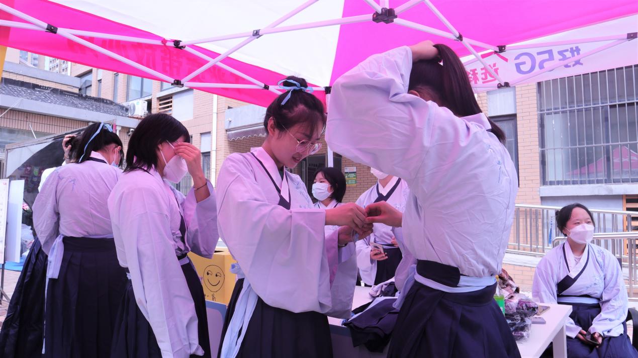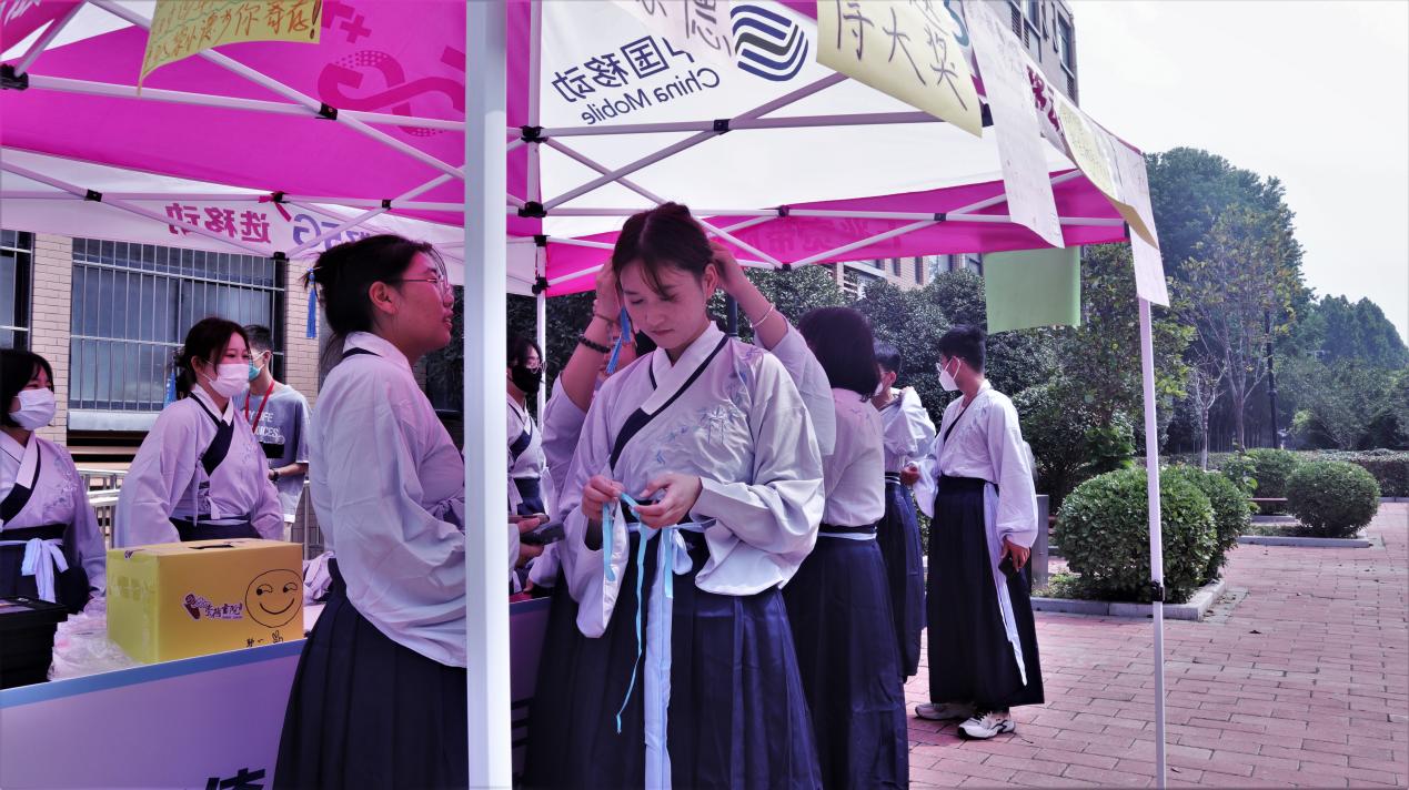 随着新生的陆续到来,崇德书院社区充满欢声笑语,辅导员尚千红和魏欣珂带领新生代表行“入学礼”。老师和同学们身着汉服,首先进行“冠衣礼”,老师为学生们正衣冠,希望每一位新生都能够注重自己的仪容整洁,成为一个有修养、有内涵的新时代大学生。其次学生行“拜师礼”,教育学生尊敬师长,勉励学生做人要清白,学艺要刻苦。